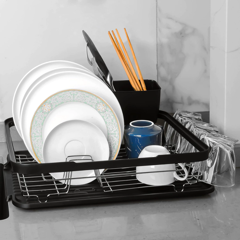 Mantene tu cocina organizada y elegante con nuestro escurridor de platos cromado, equipado con una bandeja en color negro para un toque de estilo adicional. Fabricado con acero cromado de alta calidad, este escurridor es extremadamente resistente y duradero, ofreciendo una solución confiable para el secado de tus platos.
